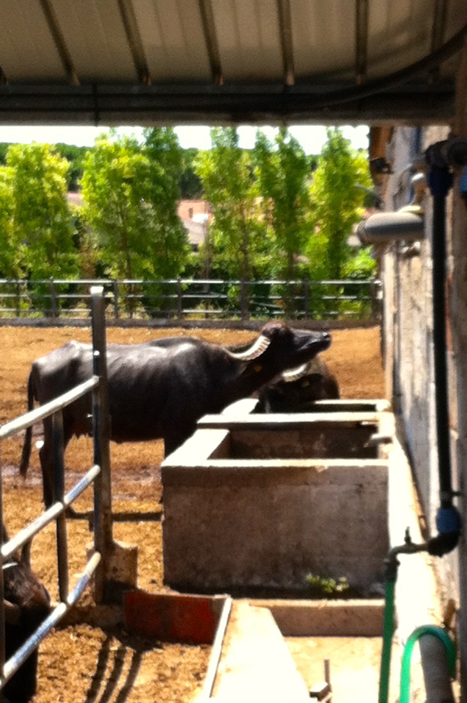 Nel caseificio ci sono le bufale tenute in un ampio spazio dove possono scorrazzare e docciarsi (niente piscinetta o massaggiatori), il controllo della filiera permette di soddisfare il disciplinare della mozzarella di bufala campana DOP.