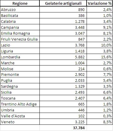 La maggioranza delle gelaterie artigiane è però nel Mezzogiorno (sud ed Isole): 31,9% del totale.