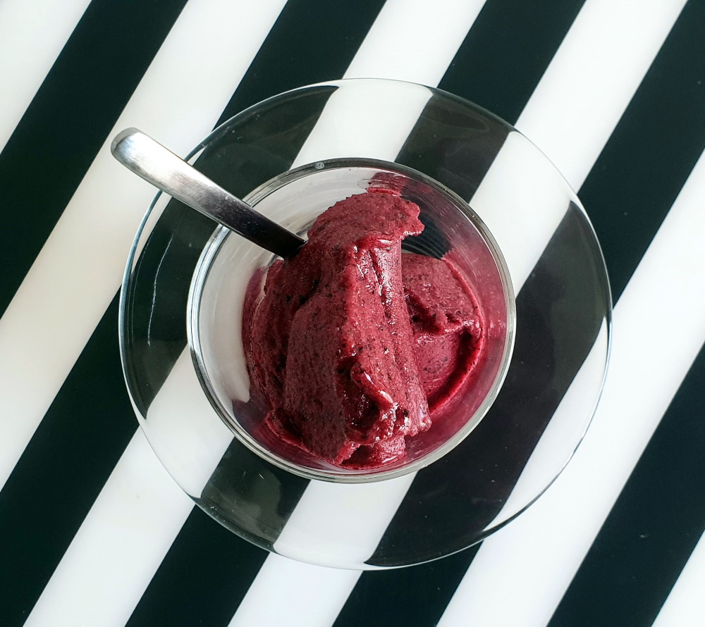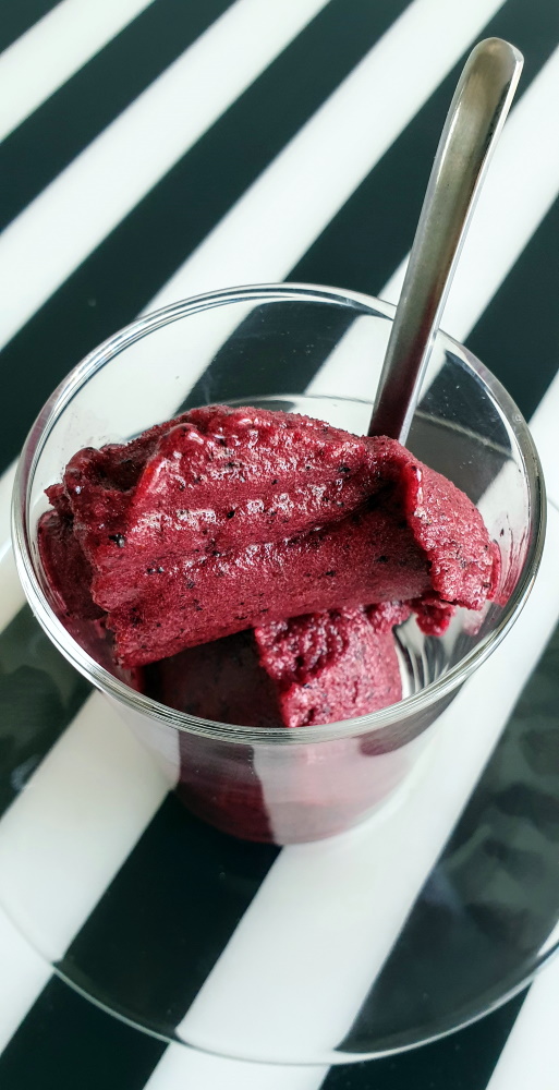 Ho esagerato coi mirtilli, ne bastano anche meno ma chiudendo gli occhi, gustando un cucchiaino di granita sembra di essere nel sottobosco tra i pini in collina.