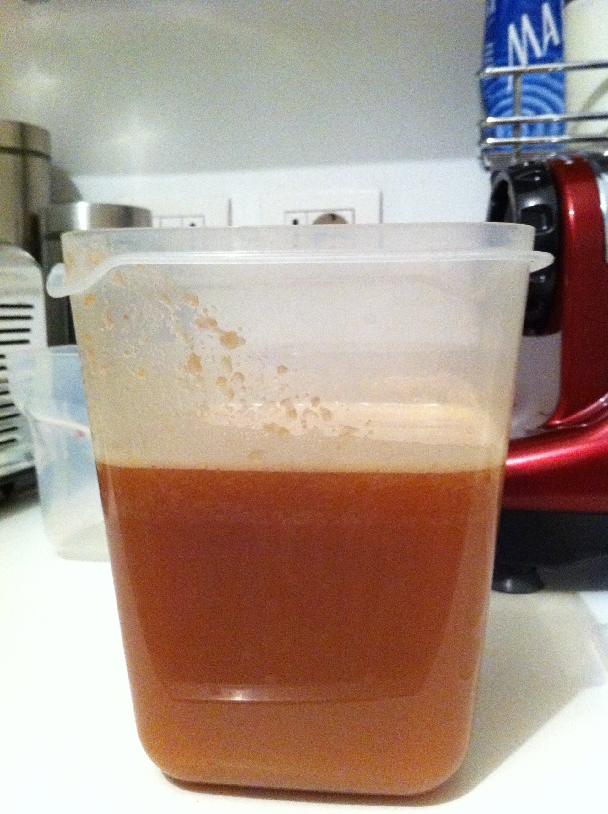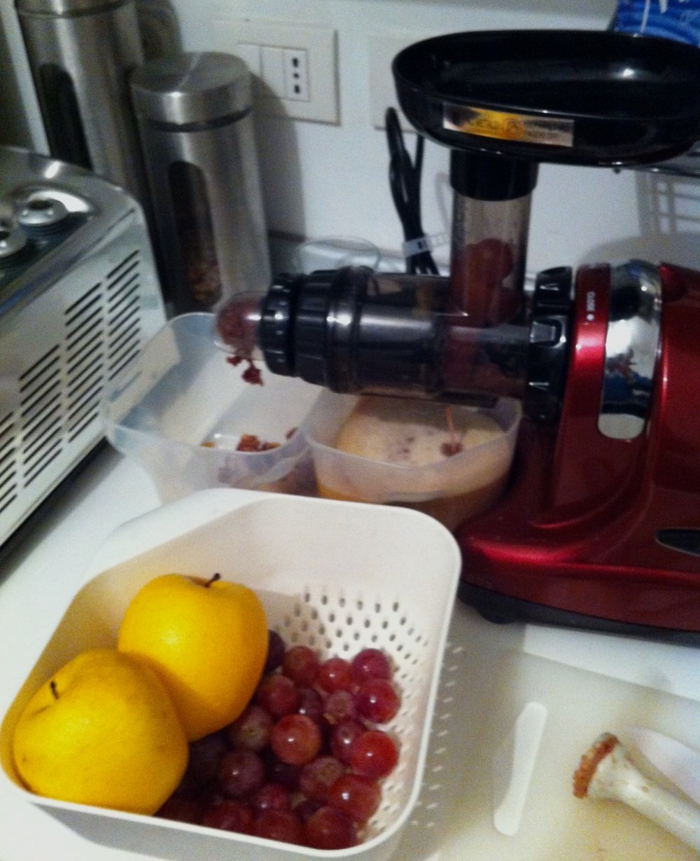 Da 1 kg di uva e due mele, questo è il succo estratto…dopo un primo assaggio, sono trascorsi circa 30 minuti.