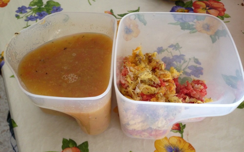 Ho ricavato poco meno di 1,5 litri di succo, 2 contenitori di succo e lo scarto in foto